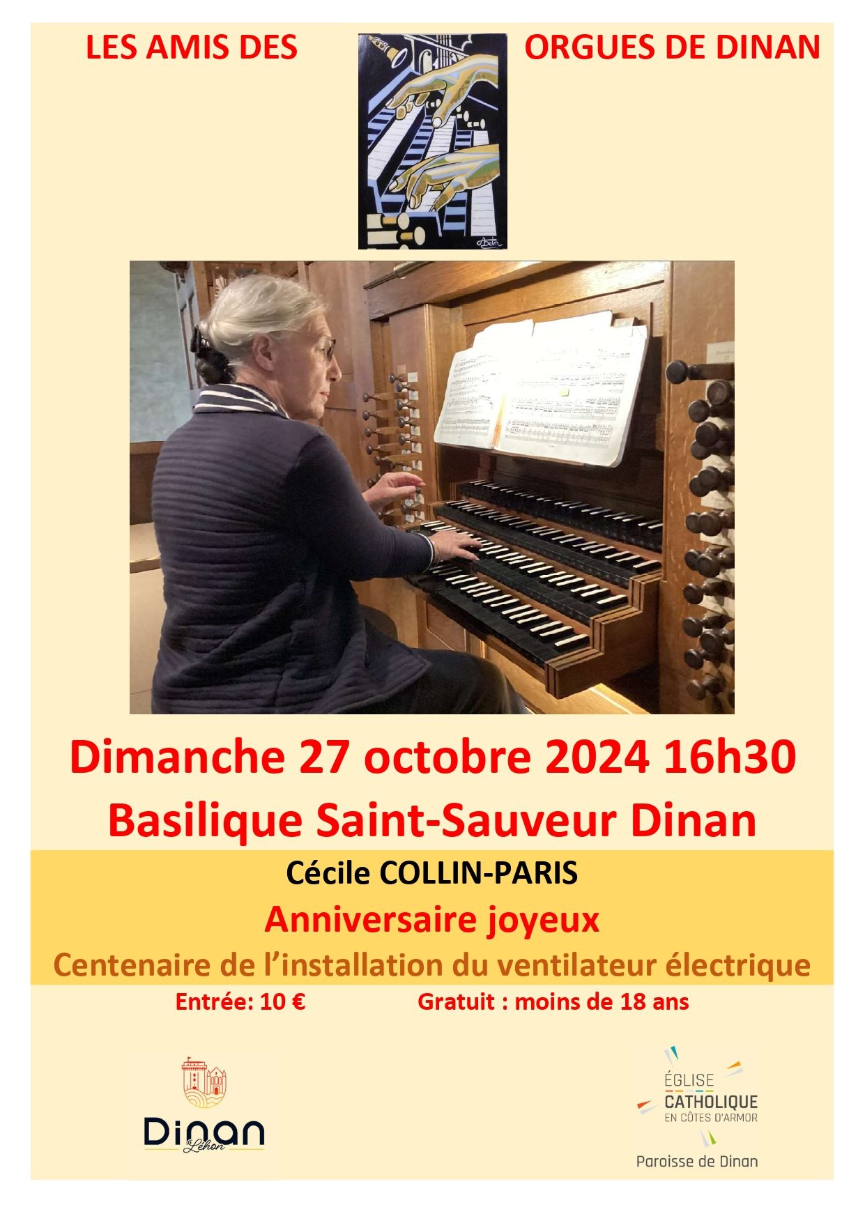 Les Amis des Orgues de Dinan vous propose le concert festif de Cécile COLLIN-PARIS qui aura lieu le dimanche 27 octobre 2024 à 16h30 à la basilique Saint-Sauveur de Dinan.