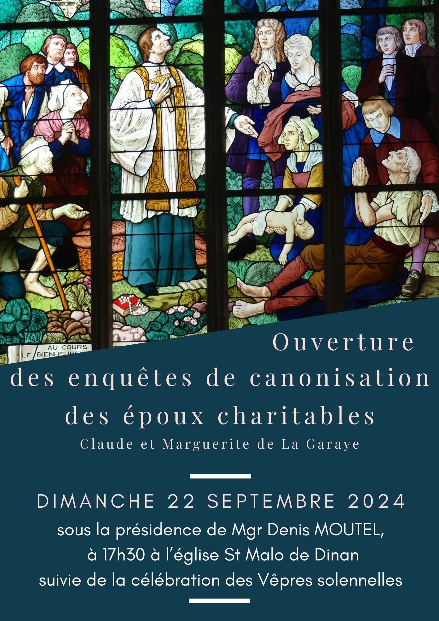 Le 22 septembre 2024 aura lieu un évènement rare : l’ouverture des enquêtes de canonisation des époux charitables, Claude-Toussaint et Marguerite Marot de la Garaye, sous la présidence de Mgr Denis Moutel, évêque de St Brieuc. A 17h30, le peuple de Dieu rassemblé à l’église St Malo de Dinan demandera à l’évêque d’ouvrir les enquêtes […]
