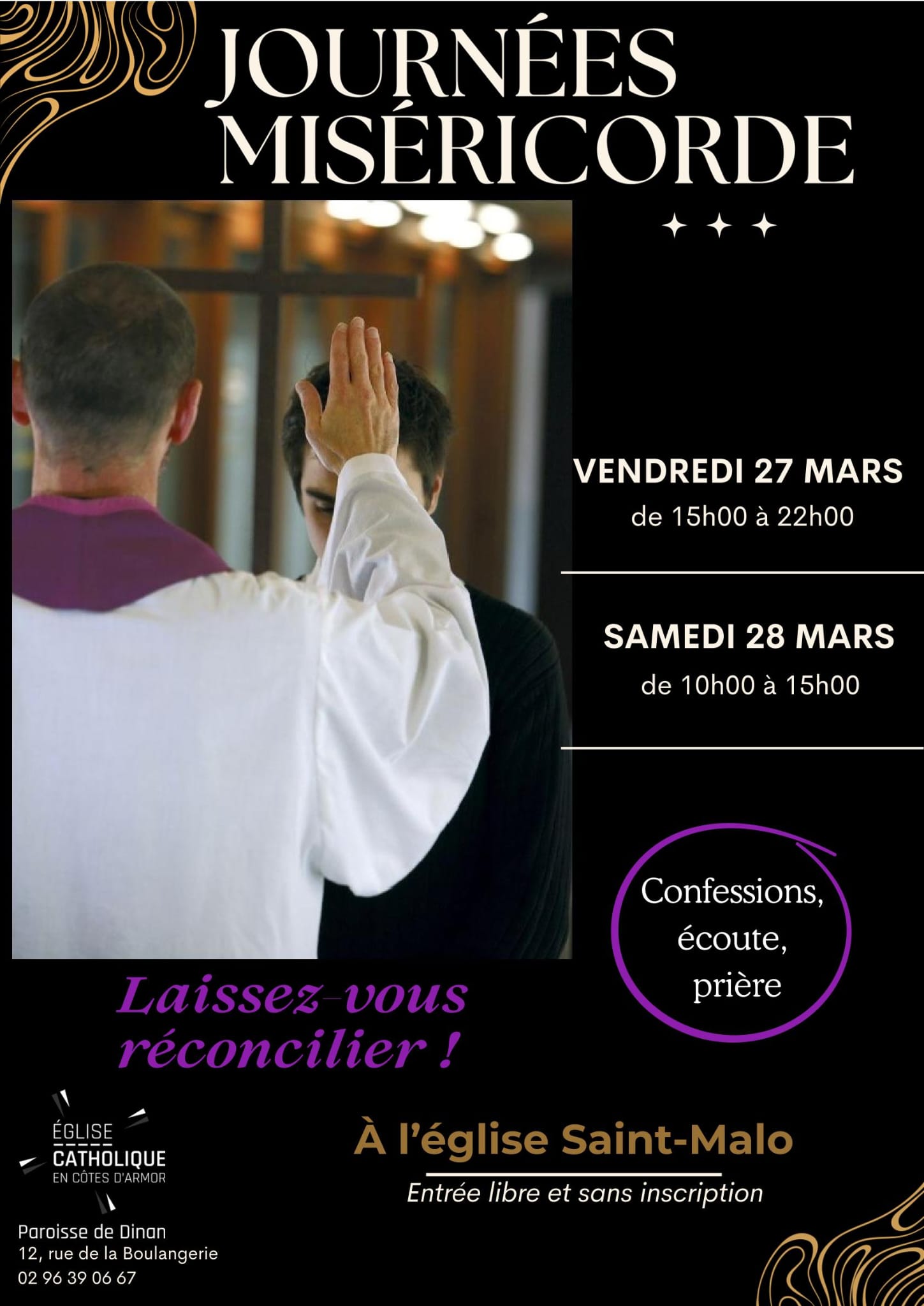 Pour entrer dans la Semaine Sainte, la paroisse de Dinan vous propose une journée Miséricorde à l’église St Malo de Dinan du vendredi 27 mars 15h au samedi 28 mars 15h. Au programme : confessions, écoute, adoration et accueil dans l’église.