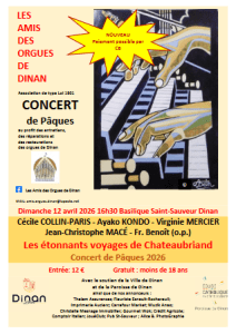 L dimanche 12 avril à 16h30, les Amis des Orgues de Dinan proposent un concert à l’Église Saint-Sauveur sur le thème » Les étonnants voyages de Chateaubriand »